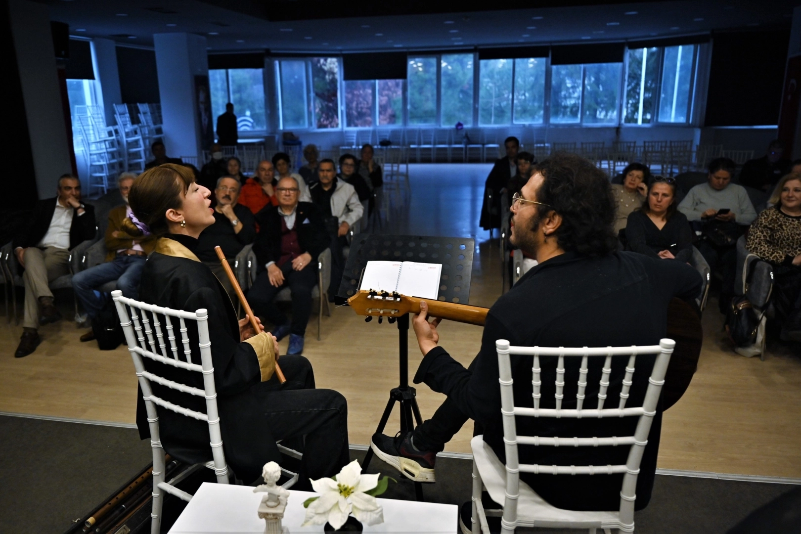 Etkinlik, Ece Şerbetman ve Sinan Kurşun ikilisinin müzik dinletisiyle başladı. Ardından şairler Zerrin Keskin ve Hatice Eğilmez Kaya şiirlerini okuyarak geceye edebi bir derinlik kattı. Programın açılışında Hidayet Karakuş’un “2026 Dünya Şiir Günü Bildirgesi”ni okuyan İbrahim Aktaş, şiirin evrensel gücüne dikkat çekti.