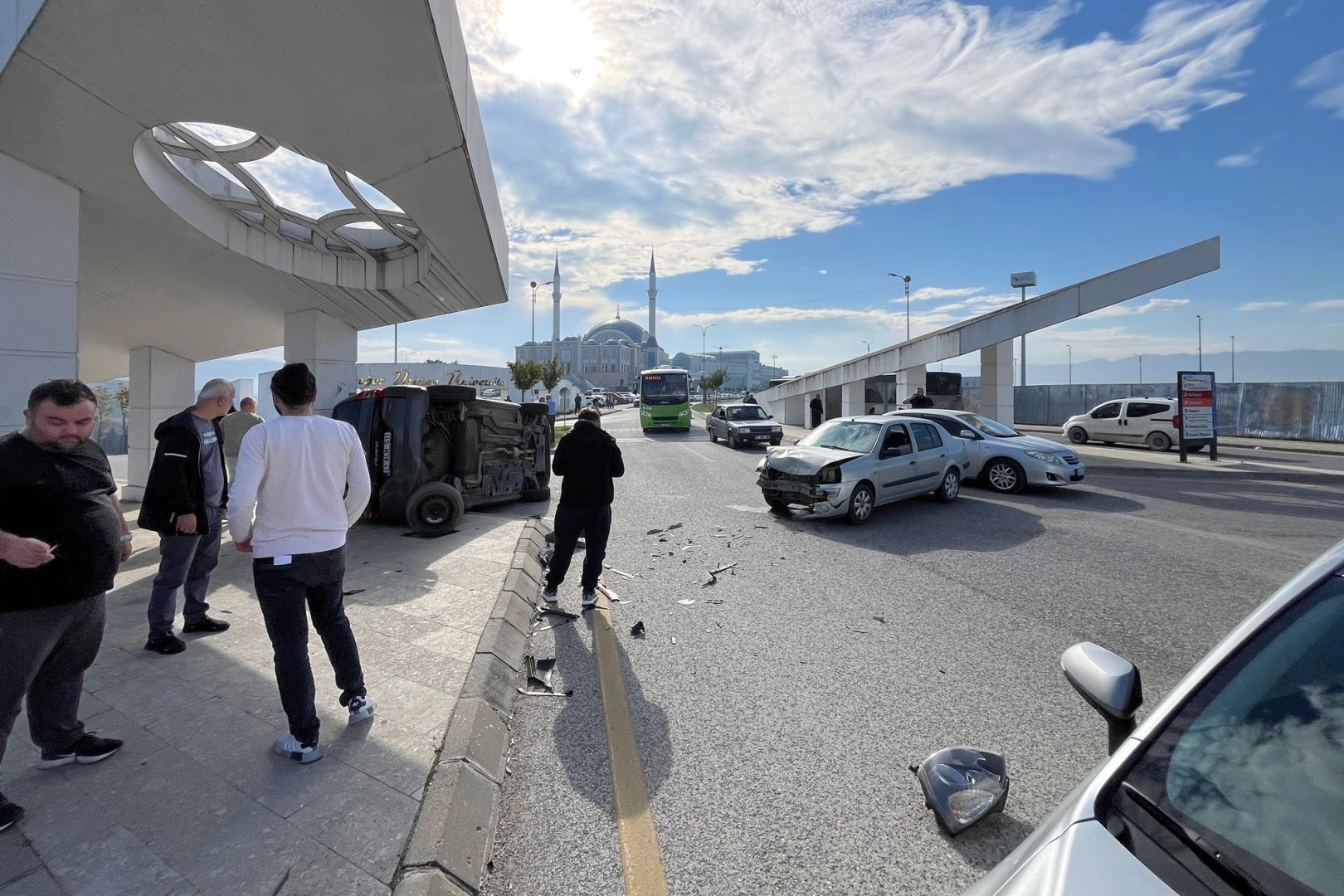 Sefer DEMİR / DÜZCE (İGFA) - Düzce Üniversitesi kavaşğında meydana gelen kazayı gören çevredeki vatandaşlar, sürücülerin yardımına koşarak araçtaki kişileri çıkarmaya çalıştı.